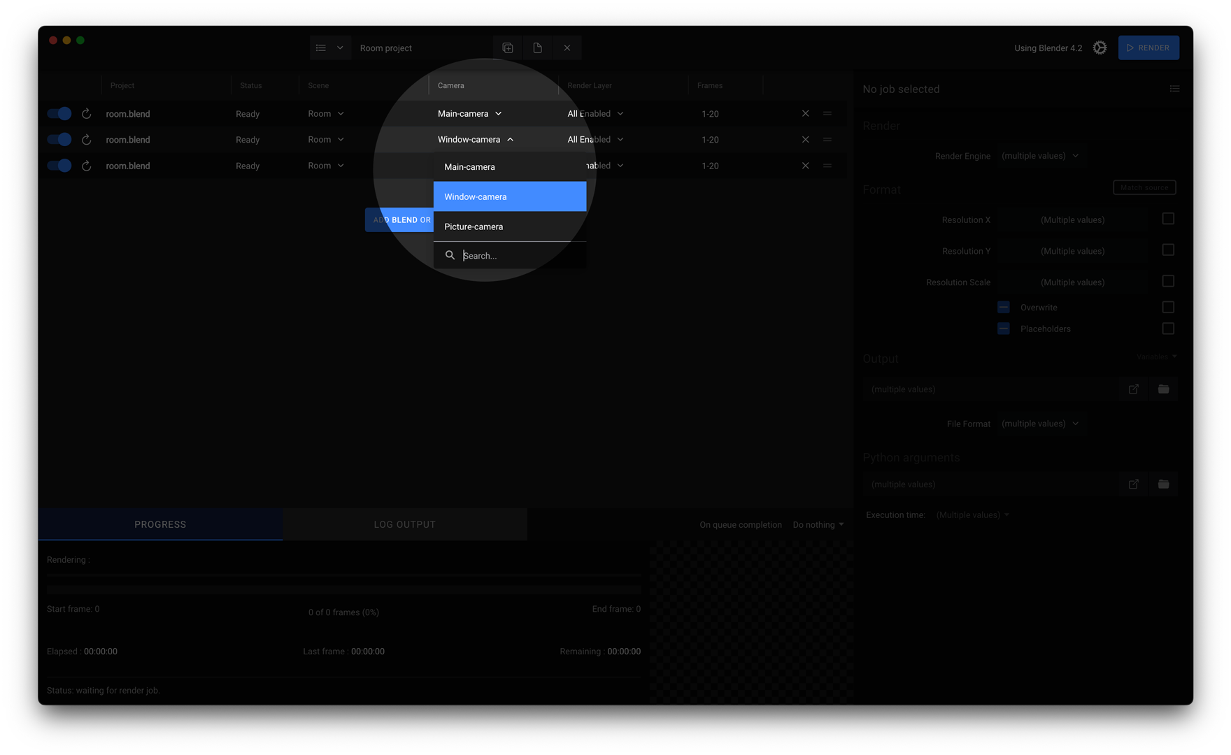 Or add all cameras with RMB ‣ Queue multiple ‣ All cameras.